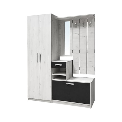 - Az 1. elem ajtajai mögött négy polc és egy kihúzható vállfatartó található.